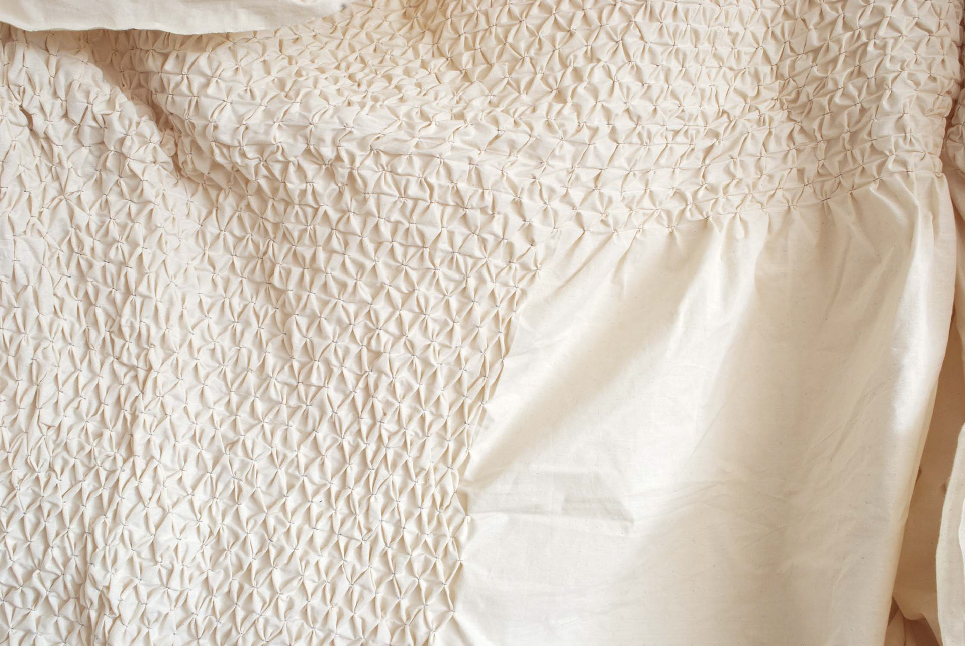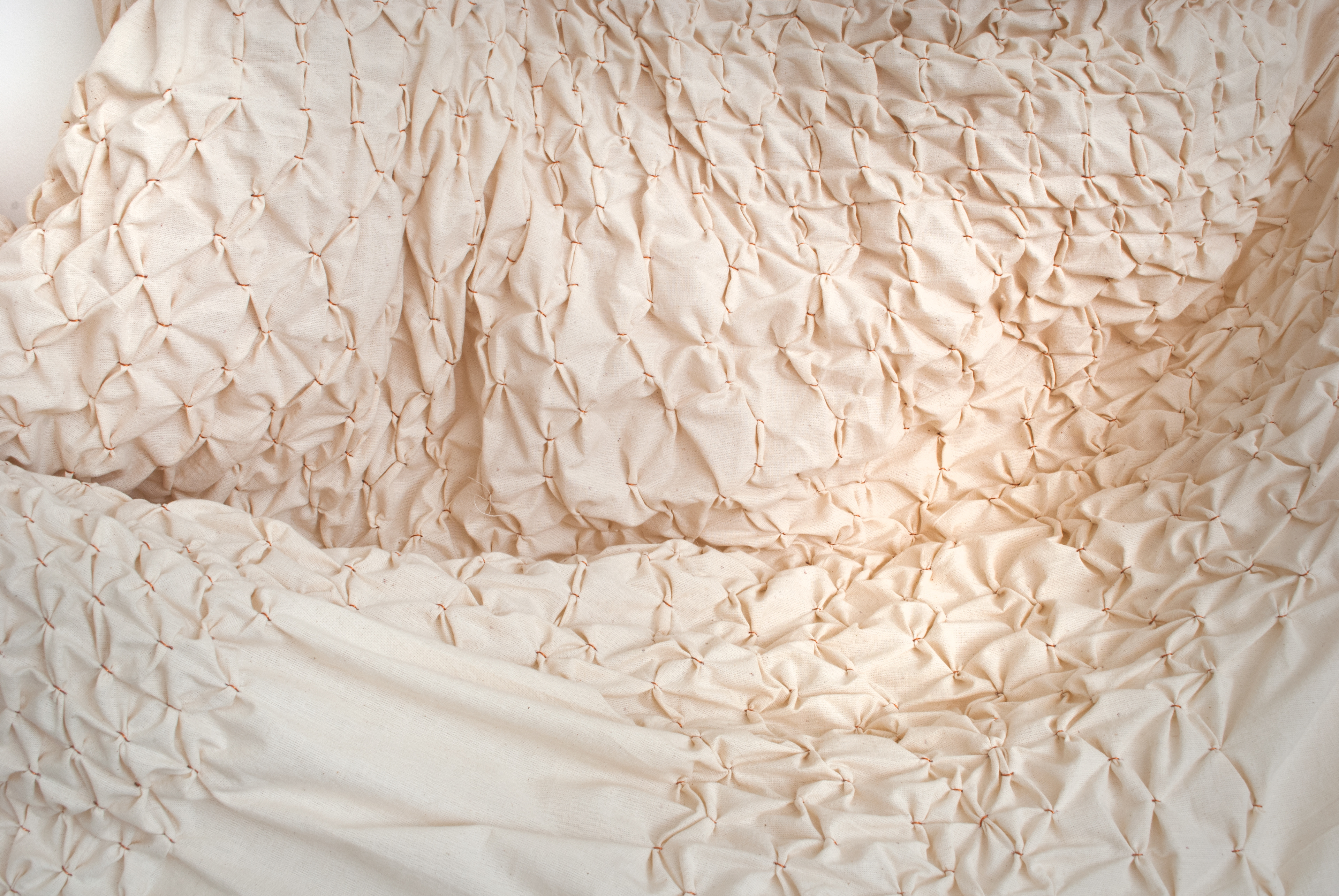Canvas and copper wire 1.60 x 6 m 2014 Pieces of copper wire pierce through the canvas and are tied in a knot, the process is repeated, resulting in a general alteration of the properties of the fabric, which acquires a skin-like appearance.